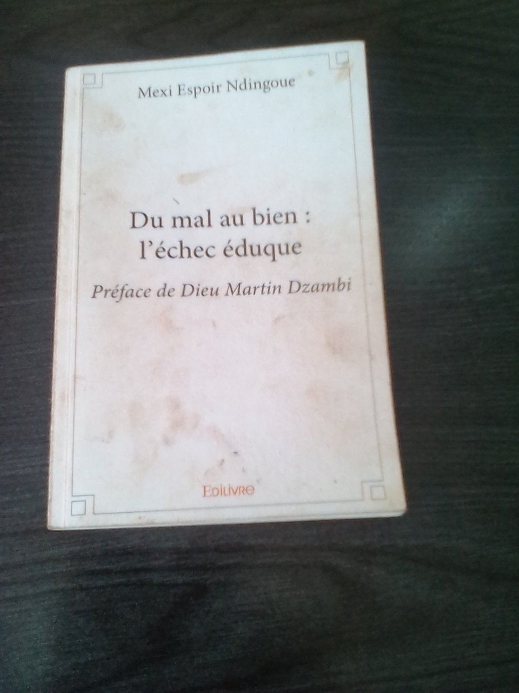 Ce roman de 62 pages démontre comment l’échec éduque l’homme dans la société, particulièrement dans le domaine politique. Il est paru en décembre 2016 aux éditions Edilivre, à Paris.
