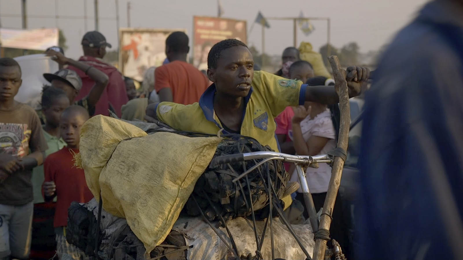 Tourné en République démocratique du Congo, ce documentaire met des images sur l’expression « gagner sa vie à la sueur de son front ». On voit Kabwita Kasongo, villageois et père de famille vivant dans la brousse, peiner sous le poids d'une cargaison trop lourde sur un vélo à l'équilibre précaire, arrivant en ville, négociant à bout de fatigue et lors d'une veillée de prières, au milieu de transes et de chants.