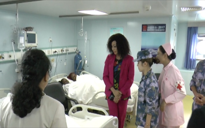 « Voir ce navire arriver au Congo pour offrir des soins gratuits au peuple congolais, j’ai envie de dire toute notre reconnaissance. Je sors donc de ce bateau extrêmement émue mais également fière de voir qu’un pays comme la Chine qui vient de loin (il faut le rappeler) devient un véritable exemple pour les pays en voie de développement. Je tiens à remercier madame l’ambassadrice qui a eu la gentillesse de m’assurer une formidable visite guidée en présence des marins. Savorgnan de Brazza était un marin. Je suis heureuse d’être venue rencontrer ses frères d’armes. Certainement, il ne pilotait pas de si grands navires, mais il a piloté des frégates et a navigué dans les mers »