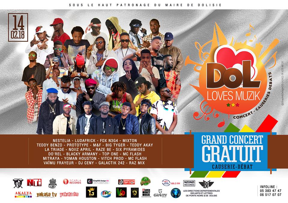 Un concert gratuit de musiques urbaines dénommé "Dolisie loves Muzik" sera organisé le 14 février, sous le patronnage de la mairie avec le soutien des directions départementales de Pointe-Noire et du Niari.