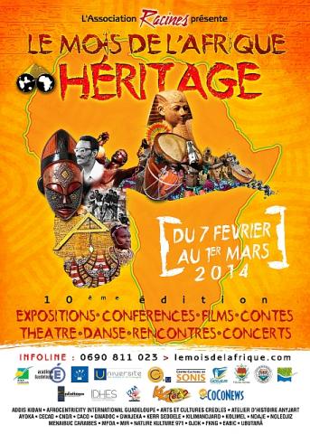 Guadeloupe. Exposition : L’association Racine organise sa dixième édition de la manifestation Le mois de l’Afrique sur le thème « Héritage ». Les manifestations proposées s’articuleront autour de trois axes centraux : culture, histoire et patrimoine ; santé et agriculture ; sciences et techniques. Avec, bien sûr, un large volet artistique. Elle se tiendra du 7 février au 1er mars dans la ville de Sainte-Anne en Guadeloupe. Plus d’informations : http://www.lemoisdelafrique.com/