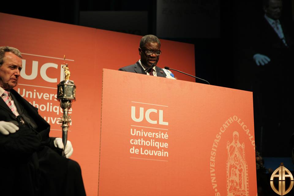 Le titre de « doctor honoris causa » a été décerné au médecin congolais sur le thème « Agir pour la société de demain ». Le titre a également été décerné au professeur de droit à Harvard, Lawrence Lessig (USA), et au premier président élu démocratiquement au Bhoutan, Jigmi Thinley. La cérémonie de remise des titres à eu lieu, le 3 février, dans la salle de théâtre de l’Aula Magna de l’Université catholique de Louvin (UCL) en Belgique. « Le diplôme de docteur honoris causa est un grand honneur, un insigne d’honneur. Mais quel honneur mérite un homme qui n’a fait que tout ce qu’un être humain normal doit faire ? », a déclaré le Dr Denis Mukwege lors de son discours. Le médecin congolais a indiqué qu’il aimerait se réjouir des honneurs mais que la violence infligée à la femme congolaise, dont le corps, matrice de la vie, a été transformé en champs de bataille, empêche toute jubilation. « Notre honneur est donc de préserver notre humanité, notre honneur est de préserver la dignité de la femme congolaise et, d’ailleurs, de poursuivre notre lutte et notre travail, de tendre la main aux blessés de la vie, et de rester en harmonie avec notre conscience dans une société en perte de repères», a-t-il déclaré.