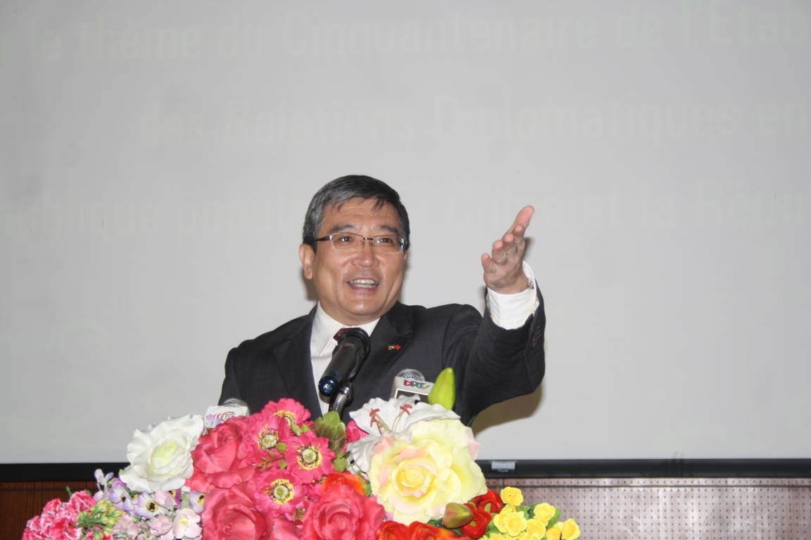 L’ambassadeur de Chine au Congo, Guan Jian, a rappelé que son pays et le Congo avaient officiellement établi leurs relations diplomatiques le 22 février 1964. Depuis lors, a-t-il poursuivi, les deux pays ont mené une coopération pragmatique et fructueuse dans les domaines économique, culturel, éducatif, sanitaire, médiatique, de la jeunesse et des femmes. « Depuis 50 ans, grâce à la haute importance et à la sollicitude accordées par leurs dirigeants, les deux pays voient leurs relations politiques avancer chaque jour davantage, leurs échanges dans tous les domaines se multiplier avec dynamisme, et l’amitié entre les deux peuples s’approfondir sans cesse. La coopération sino-congolaise est en train de devenir un modèle pour la coopération Sud-Sud », a déclaré Guan Jian.
