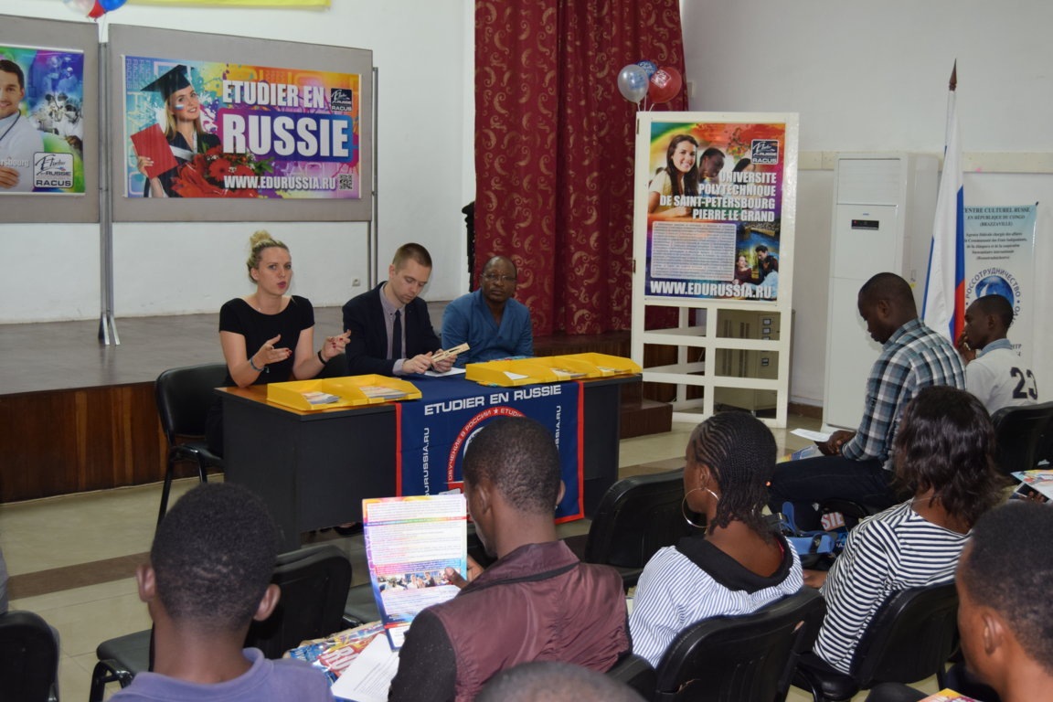 Composée de Shamil Nutsalov et Arthur Khaydarov, tous deux responsables pour les étudiants étrangers, et d’Anna Oleynikova, chef de département de l’Afrique du nord et de l’ouest, la délégation d'émissaires des universités d’Etat russes s'est entretenue, le 19 mai à Brazzaville, avec des étudiants congolais. « Nous sommes ici au Congo pour organiser des salons d’éducation à Brazzaville et Pointe-Noire, deux principales villes de ce pays. Nous représentons vingt universités d’Etat de Russie et invitons les étudiants et futurs bacheliers congolais à s’inscrire dans nos universités, à suivre de bonnes études afin d’obtenir des diplômes et avoir du succès », a déclaré Arthur Khaydarov, agent au bureau central de l’organisation Racus Saint Pétersbourg, au cours de l'entretien qui s'est déroulé au Centre culturel russe (CCR).