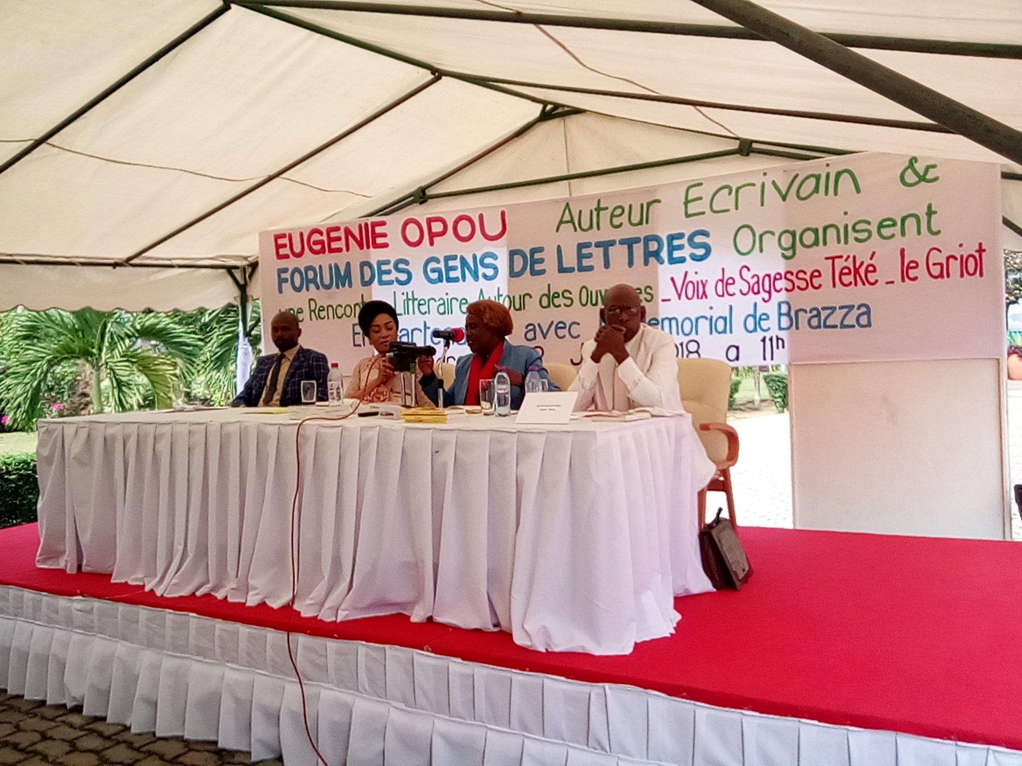 Après "Une femme candidate aux élections législatives au Congo" et "Une rose pour les tirailleurs", les éditions L’Harmattan Congo viennent de publier deux ouvrages d’Eugénie Mouayini Opou, intitulés "Voix de sagesse téké", un recueil de contes, et "Le griot, Pensée et mémoire de la tradition orale", un ressourcement dans la tradition orale téké, a expliqué le représentant de la maison d’édition, Jackson Darius Makiozy Bansimba, après le mot de bienvenue de la directrice générale du mémorial, Bélinda Ayessa.