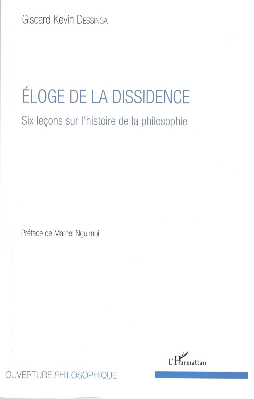 En effet, si pour Erasme seuls les fous sont de vrais chrétiens, parce que seuls capables de s’ouvrir à l’amour du prochain, de pardonner à leurs ennemis et les seuls qui n’aspirent ni aux richesses ni au pouvoir, disposés à renoncer à tout pour suivre le Christ et capables de transgresser les habitudes sociales pour suivre et vivre de façon radicale et authentique le message du Christ, Giscard Kevin Dessinga, par contre, est convaincu que dans la vie en général, tout comme dans la science et en politique, la dissidence est un facteur de progrès et, seuls les dissidents font avancer les choses. C’est ce qu’il met en exergue dans cet essai, en relisant l’histoire de la philosophie en six leçons.