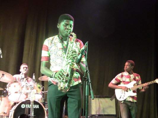 Après cette série qui a servi à faire montre de leur créativité personnelle, Vijana Jazz est passé à des interprétations de grandes figures du jazz telles que Earl Klugh, Charlie Parker et Wes Montgomery. Des moments que les férus de jazz présents dans la salle ont affectionné. Et pour finir en beauté, mutuashi et seben se sont invités. Entre les deux, le slow I’m thirsty s’est élevé comme une complainte agréable à entendre. Dans Two coulors, qui lui a précédé ont été ressenti les influences du rythme kasaïen mixé à du blues. Isaac a alors pris la liberté de gagner le devant de la scène échangeant ses percussions contre le ditumba dont le son particulier a ravi le public. Il n’y avait pas mieux que Yaka Tobina pour créer une ambiance festive. Le seben que certains condisciples des stars de la soirée semblaient connaître par cœur s’est joué en chœur. Les instruments du sextuor devaient désormais rivaliser avec les sons émis par plusieurs d’entre eux, occupés à reproduire, mieux imiter un instrument ou un autre avec sa bouche. Un exercice auquel ils s’adonnaient avec ferveur.