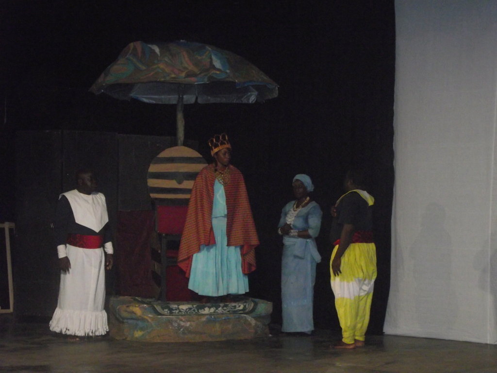 Promotion politique de la femme, soutien actif des jeunes à des transformations sociales progressistes ne sont pas parmi les traits dominants de la société traditionnelle : le passé précolonial sert ici à porter à la scène des problèmes contemporains. Dans cette pathétique pièce, Jacques Moussayandi a joué le rôle du roi ; Adolphine Milandou et Alphonsine Moundélé de la reine ; Raïssa Nzitoukoulou de la princesse ; Richilvie Babela du prince ; Arsène Mbemba ; Maurice Ouabouanadio ; Alexandre Mikouiza ; Patrice Kivili ; Edgard Banackissa, des conseillers ; Marcellin Kiwassi ; Pascale Elzevie Touloulou de la mise en scène ; Magloire Nzoni du régisseur ; Laurent Kouakou (Costumes) ; Brechie Ntadi de bijoutier ; Jacques Loubelo au chant (extrait Ntima Luaka).