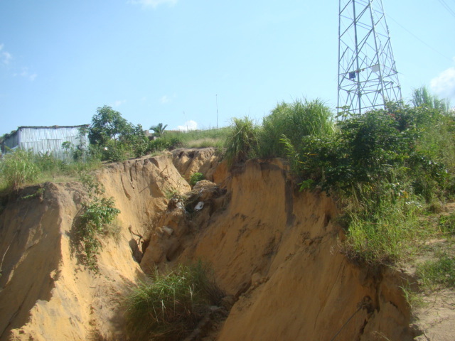 D’après la SNE, l’érosion de la Cité Don Bosco est causée par les occupations anarchiques, la présence humaine. Cela est causé, a expliqué Léon Ibovi, par le ruissèlement des eaux, les maisons érigées, les écoulements des eaux qui tombent des toits et emportent tout le sable. La ligne 30KV date des années 80. Elle avait été érigée en 1985 pour aller au PK 45.